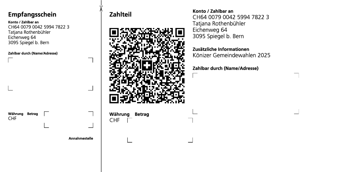 Sie können den Einzahlungsschein verwenden, um mir eine Spende zu senden. Ich bedanke mich für Ihre Unterstützung.